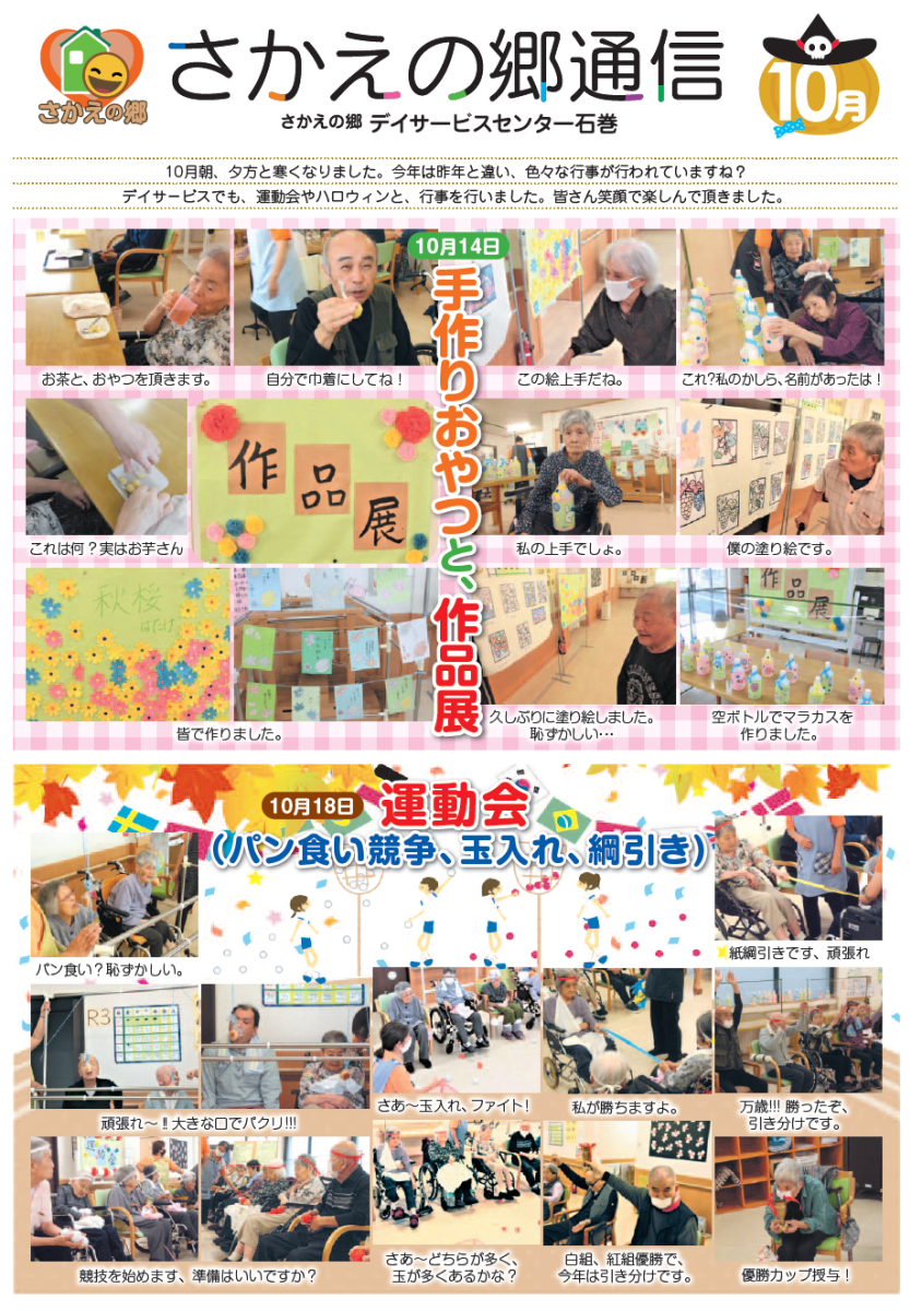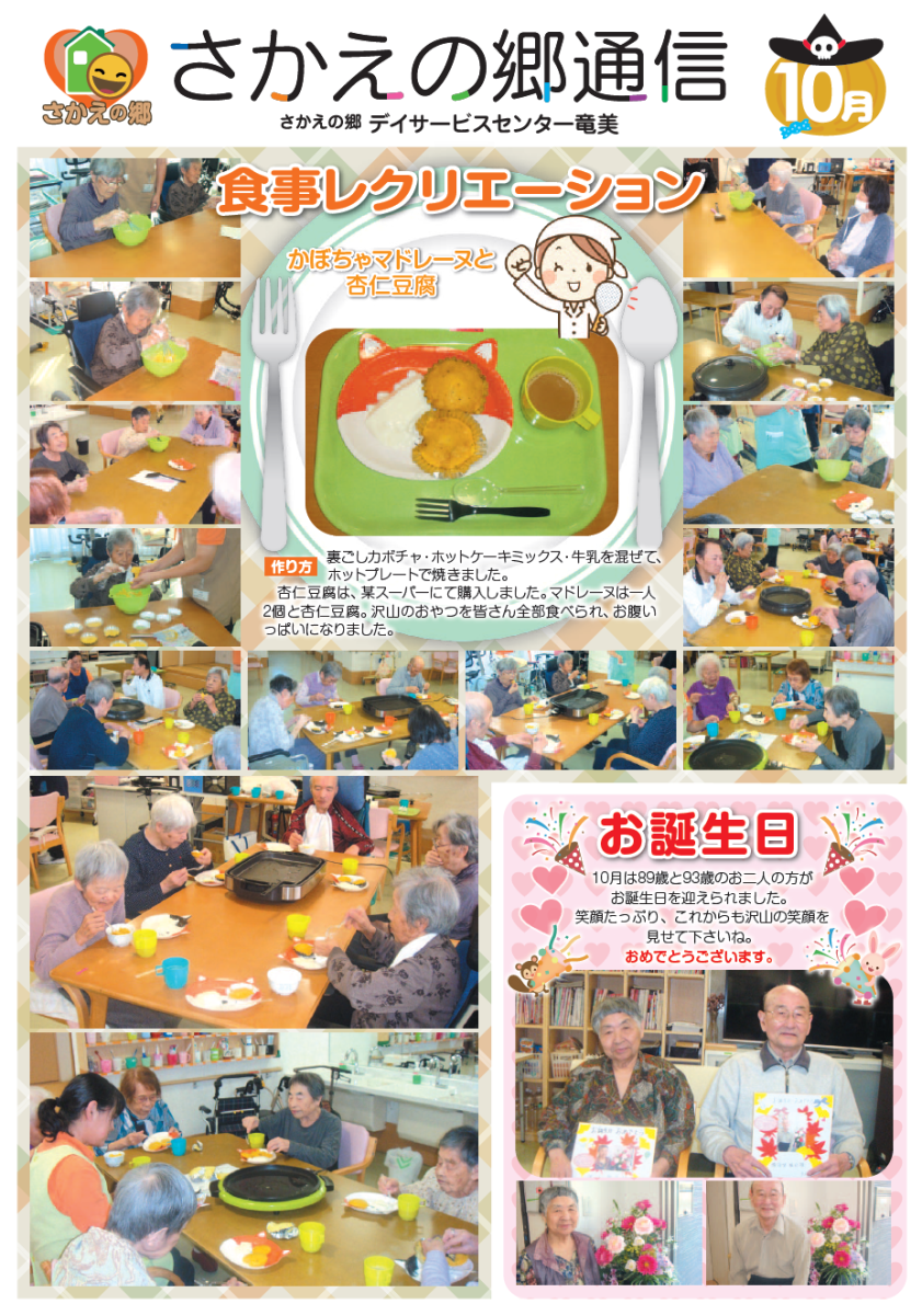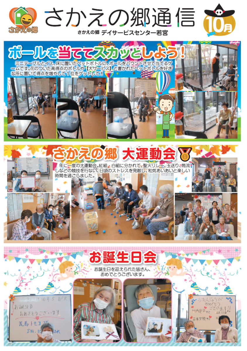 さかえの郷通信10月号 2021/12/02 介護サービスで地域1番を目指すさかえの郷グループの施設だよりを是非ご覧ください。 (豊橋、豊川、田原、蒲郡、岡崎) *施設だよりの画像をクリックで閲覧できます。 R3.10月デイ竜美 R3.10月デイ田原 R3.10月デイ石巻 R3.10月デイ宿 R3.10月デイ若宮 R3.10月デイ柿の花