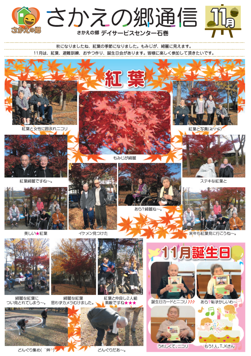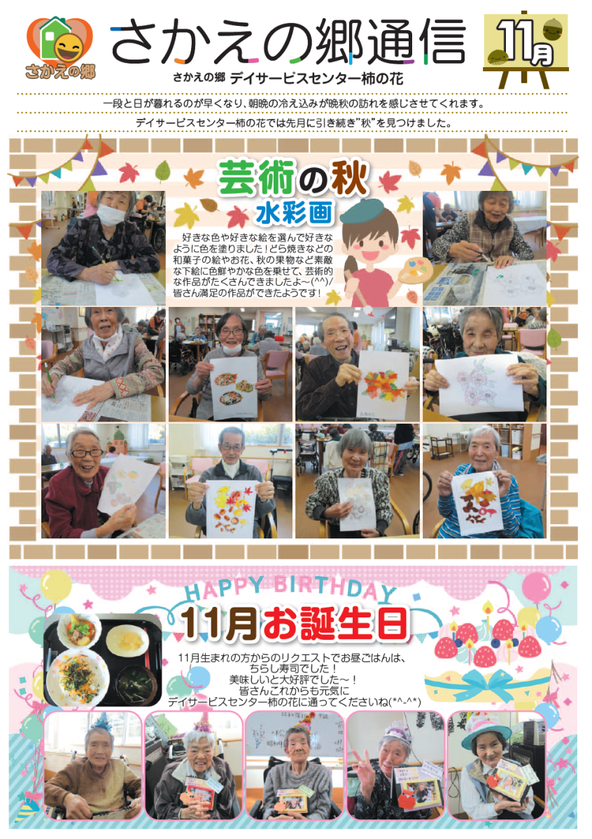 さかえの郷通信11月号 2022/01/04 介護サービスで地域1番を目指すさかえの郷グループの施設だよりを是非ご覧ください。 (豊橋、豊川、田原、蒲郡、岡崎) *施設だよりの画像をクリックで閲覧できます。 R3.11月デイ柿の花 R3.11月デイ竜美 R3.11月デイ田原 R3.11月デイ石巻 R3.11月デイ宿 R3.11月デイ若宮