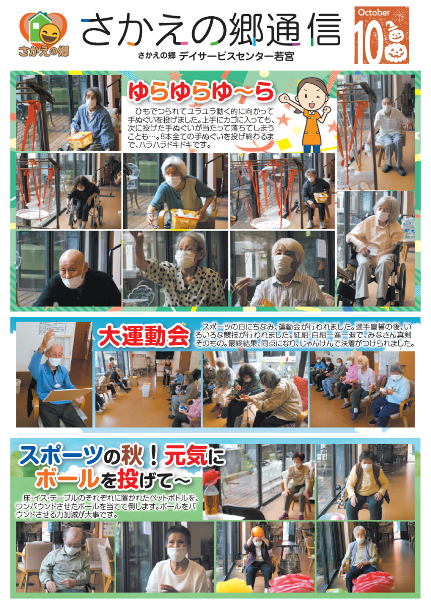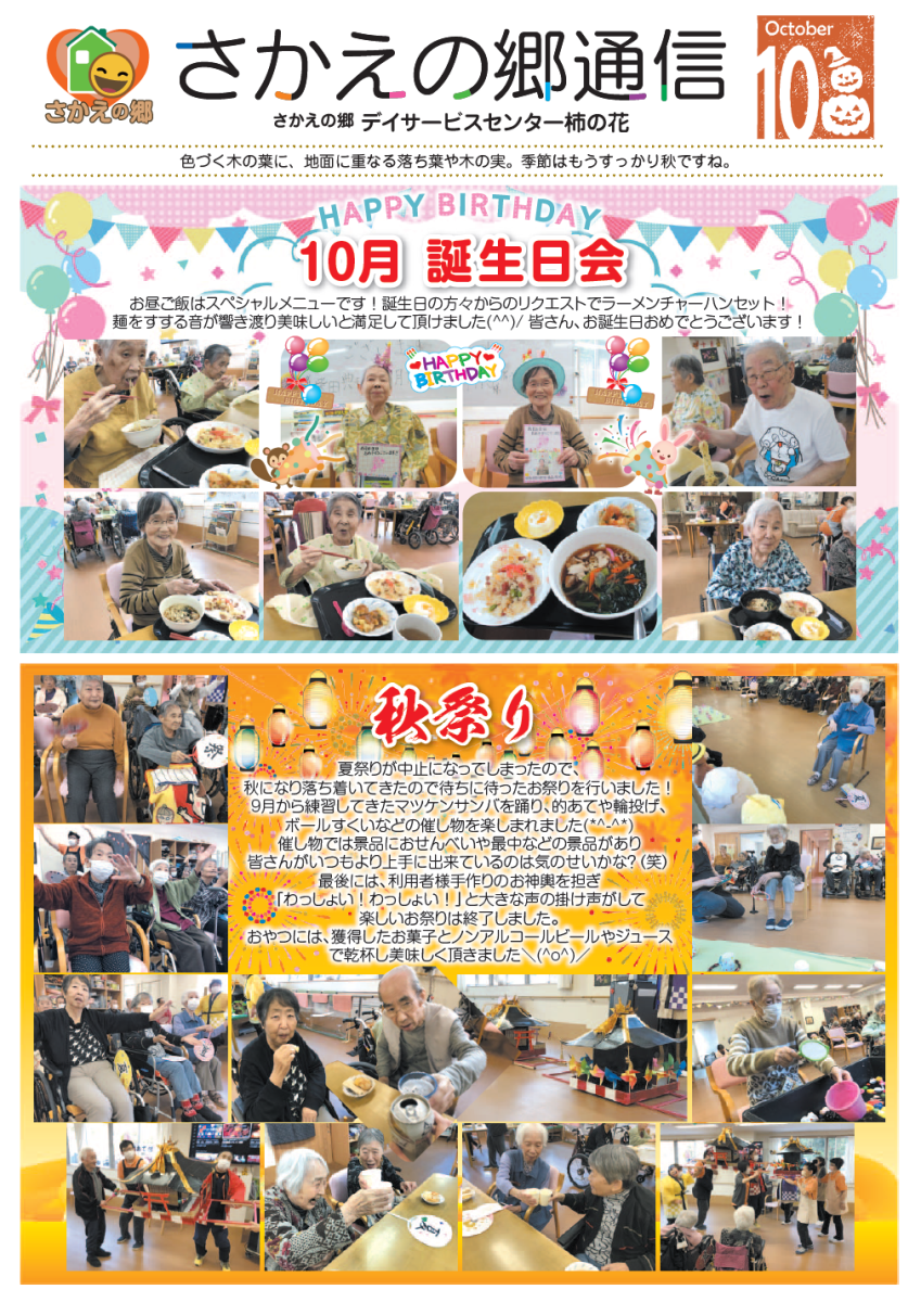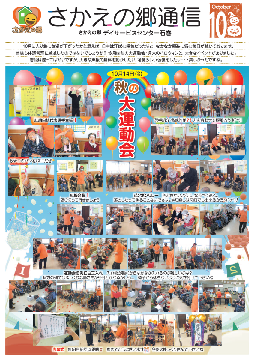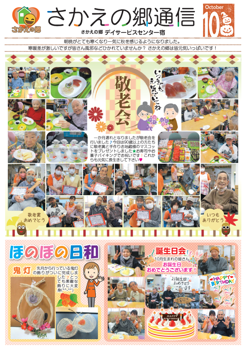 さかえの郷通信2022年10月号 2022/12/02 介護サービスで地域1番を目指すさかえの郷グループの施設だよりを是非ご覧ください。 (若宮、田原、宿、石巻、竜美、柿の花) *施設だよりの画像をクリックで閲覧できます。