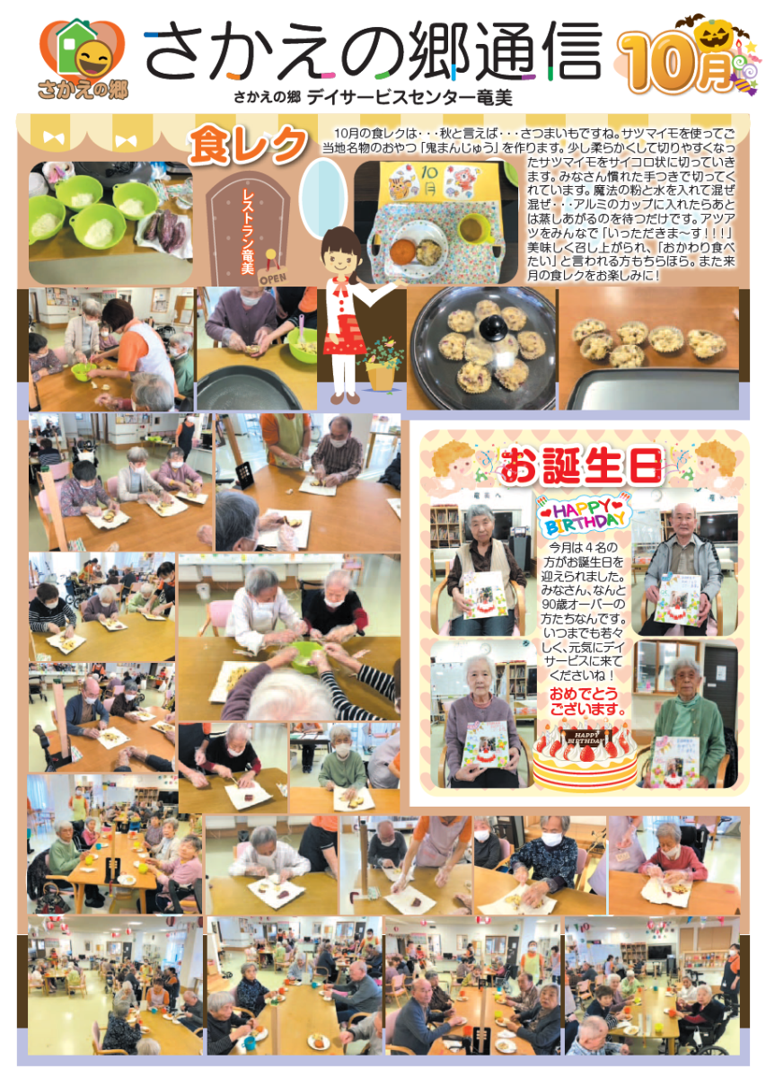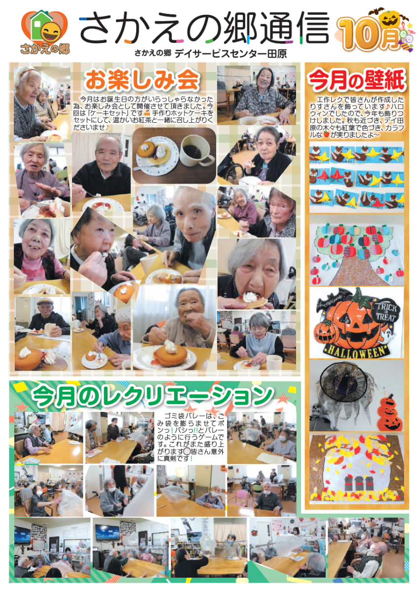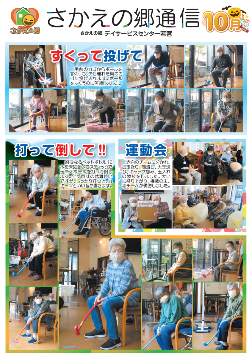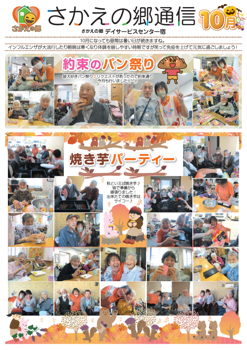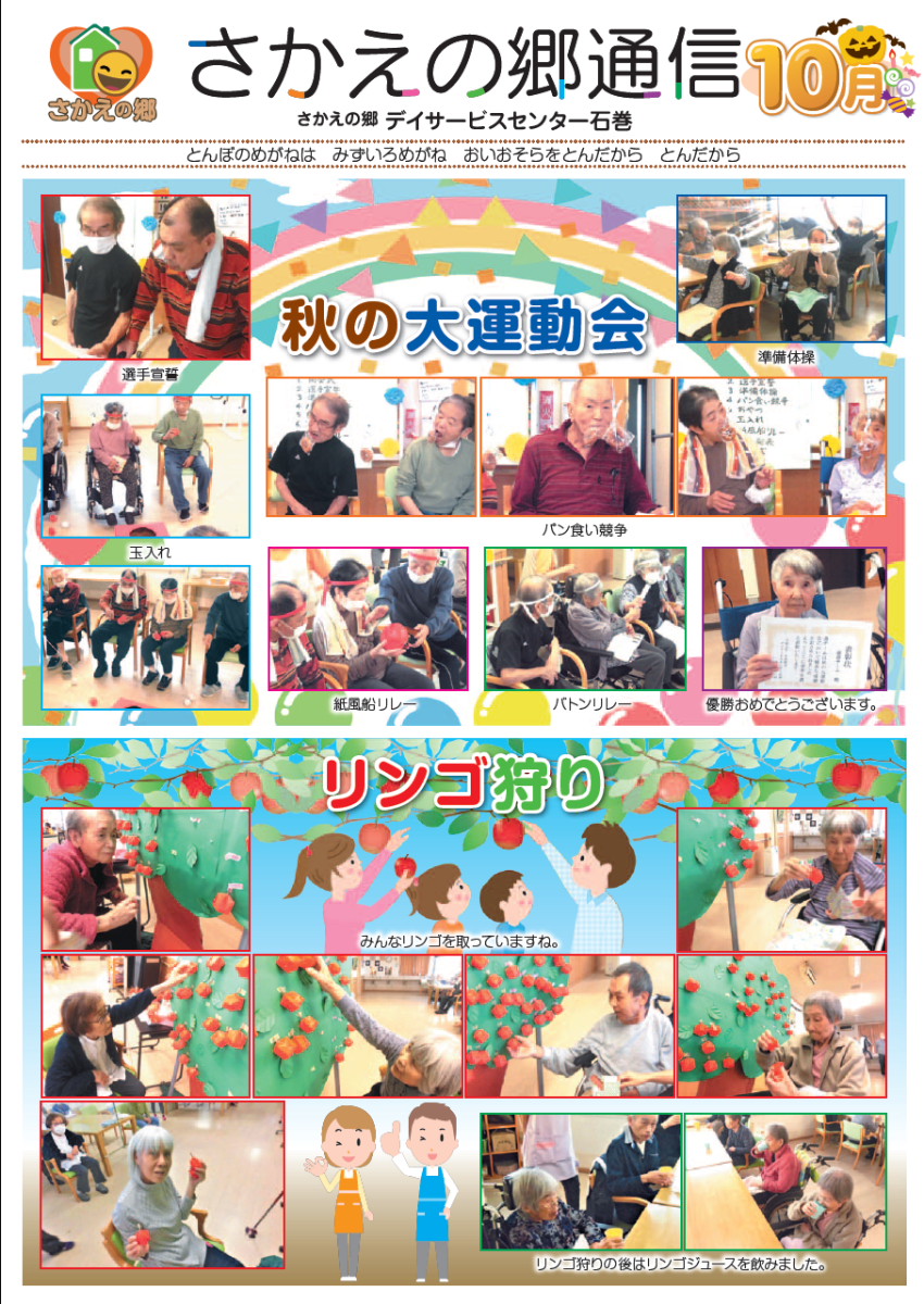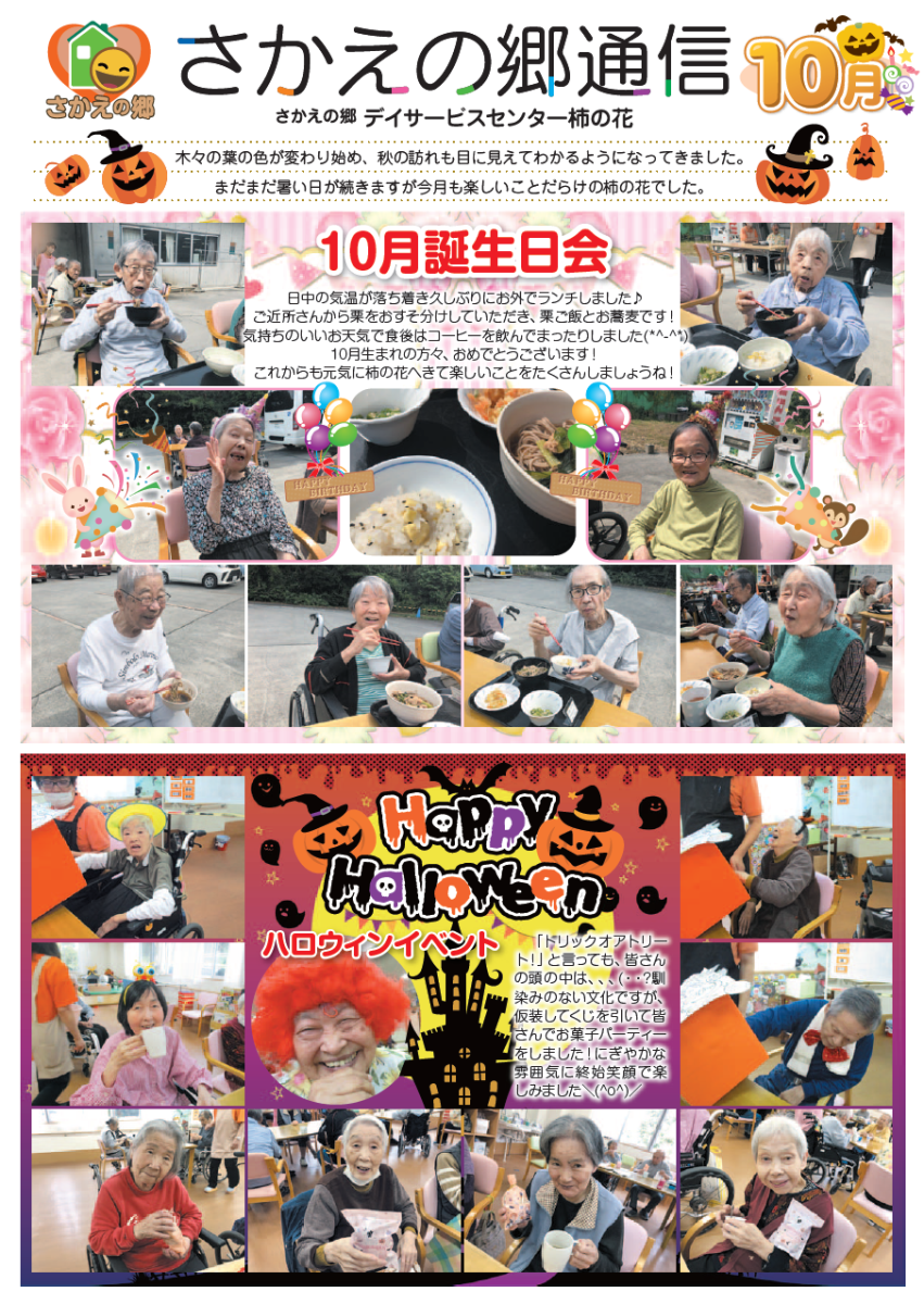 さかえの郷通信2023年10月号 2023/12/08 介護サービスで地域1番を目指すさかえの郷グループの施設だよりを是非ご覧ください。 (若宮、田原、宿、石巻、竜美、柿の花) *施設だよりの画像をクリックで閲覧できます。