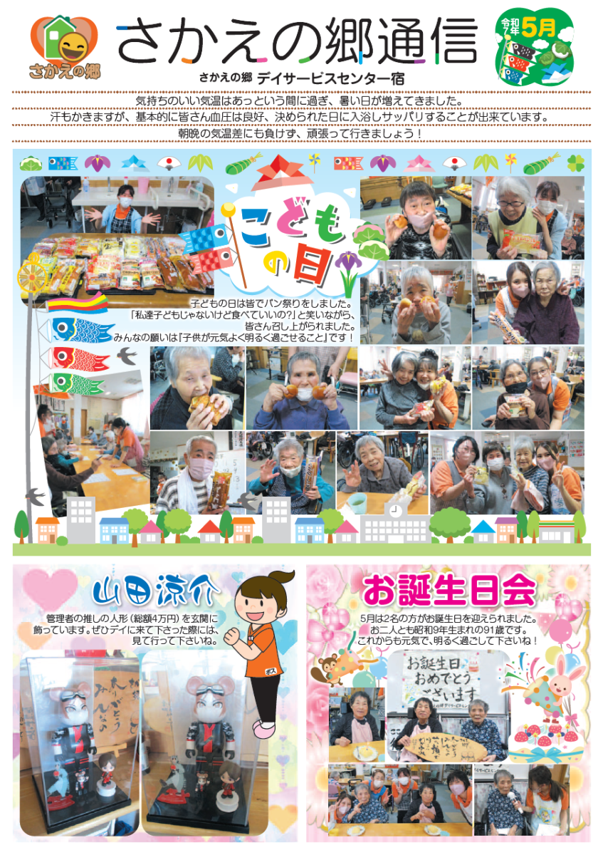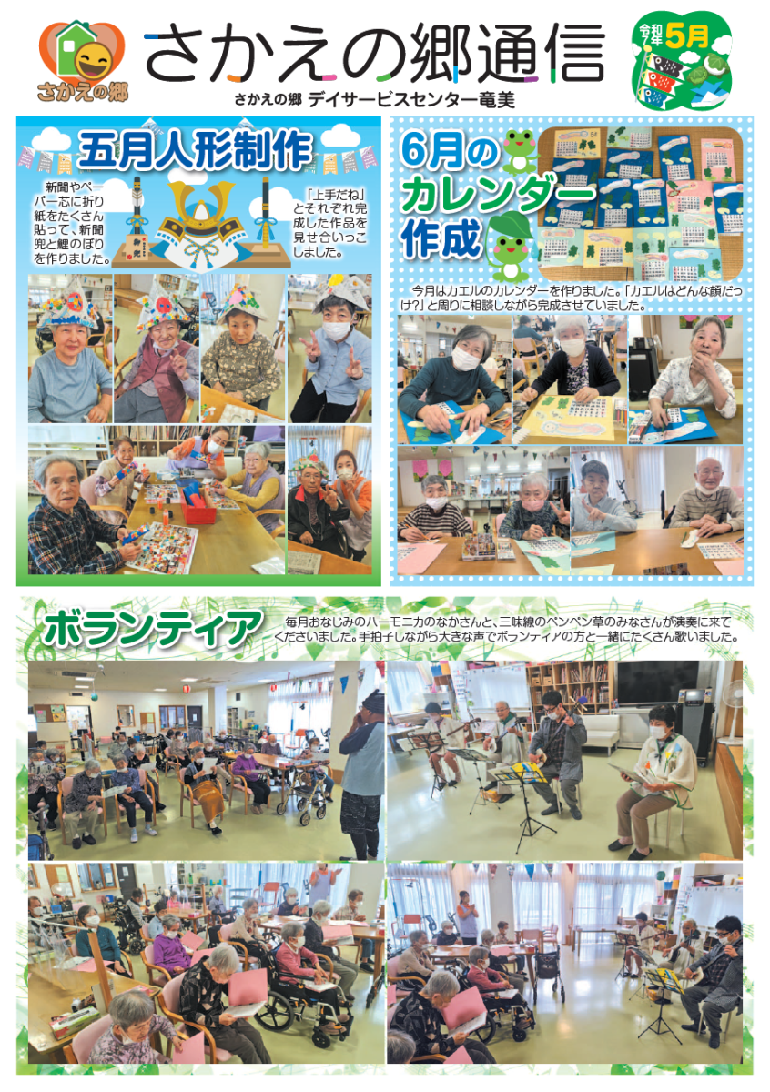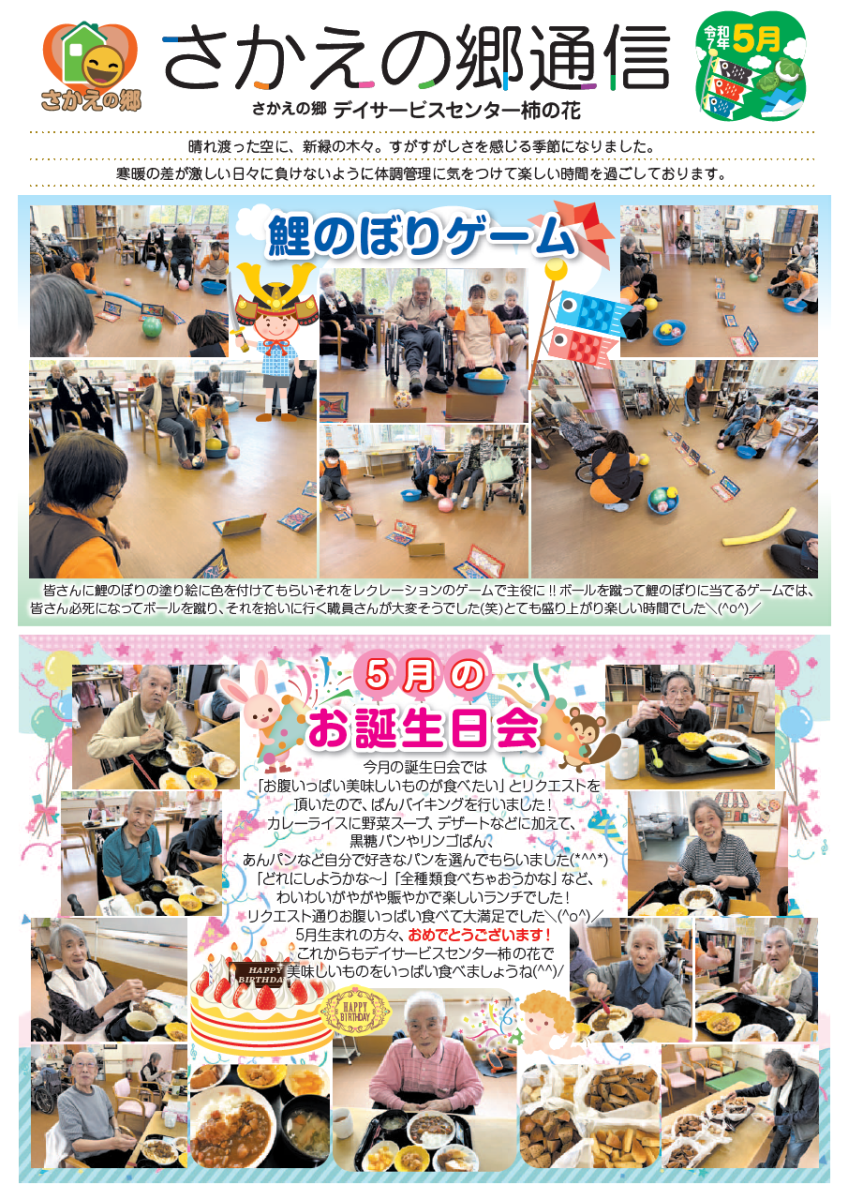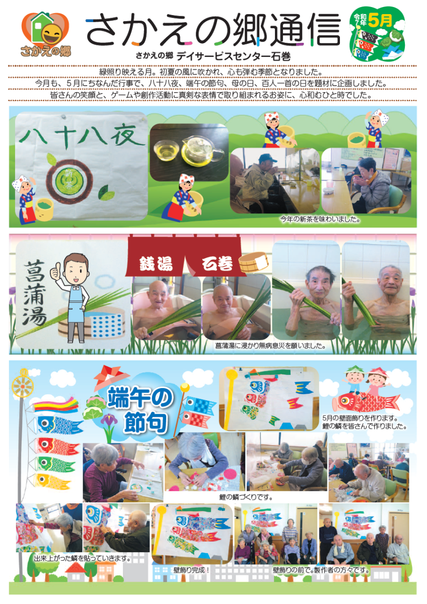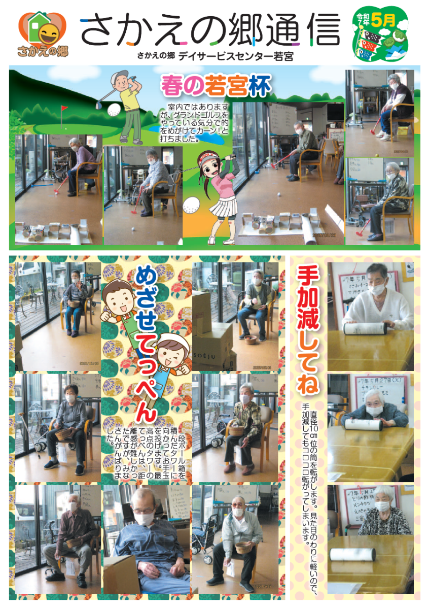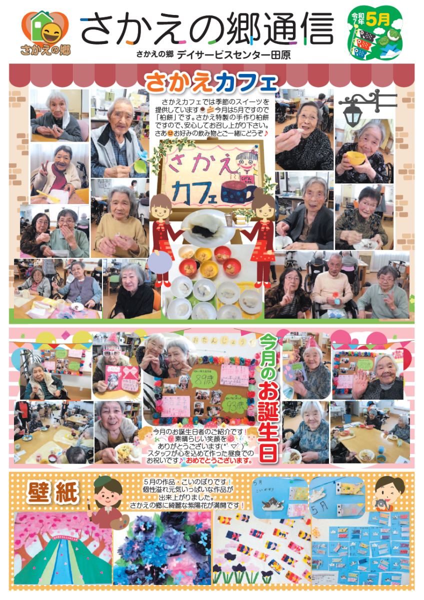 さかえの郷通信2025年5月号 2025/07/02 介護サービスで地域1番を目指すさかえの郷グループの施設だよりを是非ご覧ください。 (若宮、田原、宿、石巻、竜美、柿の花) *施設だよりの画像をクリックで閲覧できます。 施設ページに動画も掲載していますのでご覧ください。